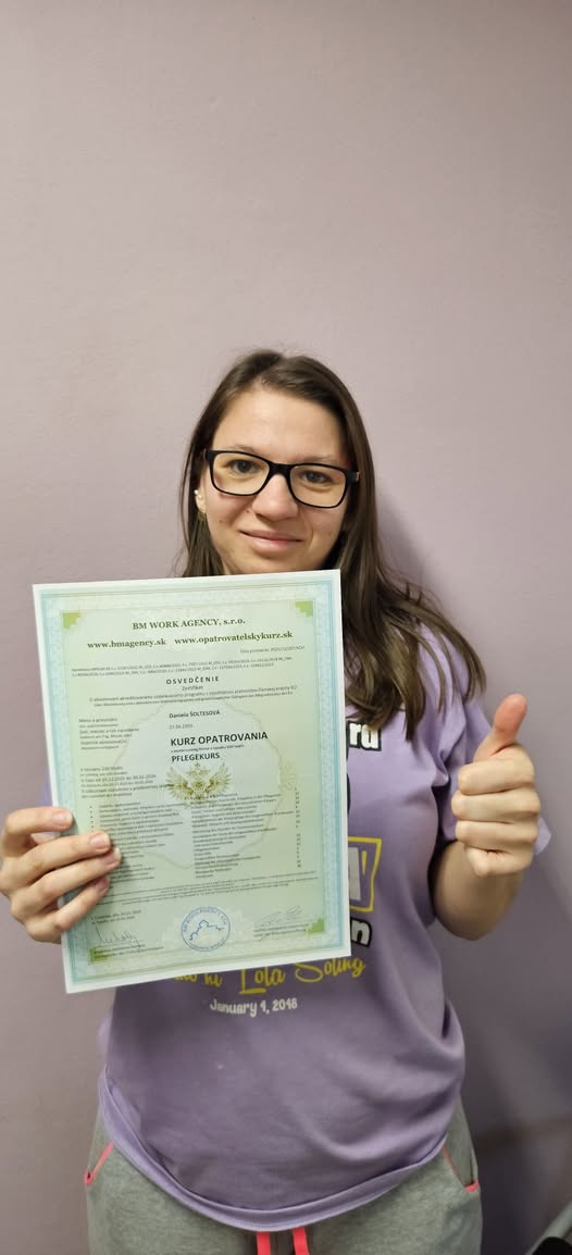 Naša klientka zo Zariadenia podporovaného bývania úspešne absolvovala opatrovateľský kurz a urobila tak dôležitý krok k väčšej samostatnosti a novým pracovným príležitostiam.